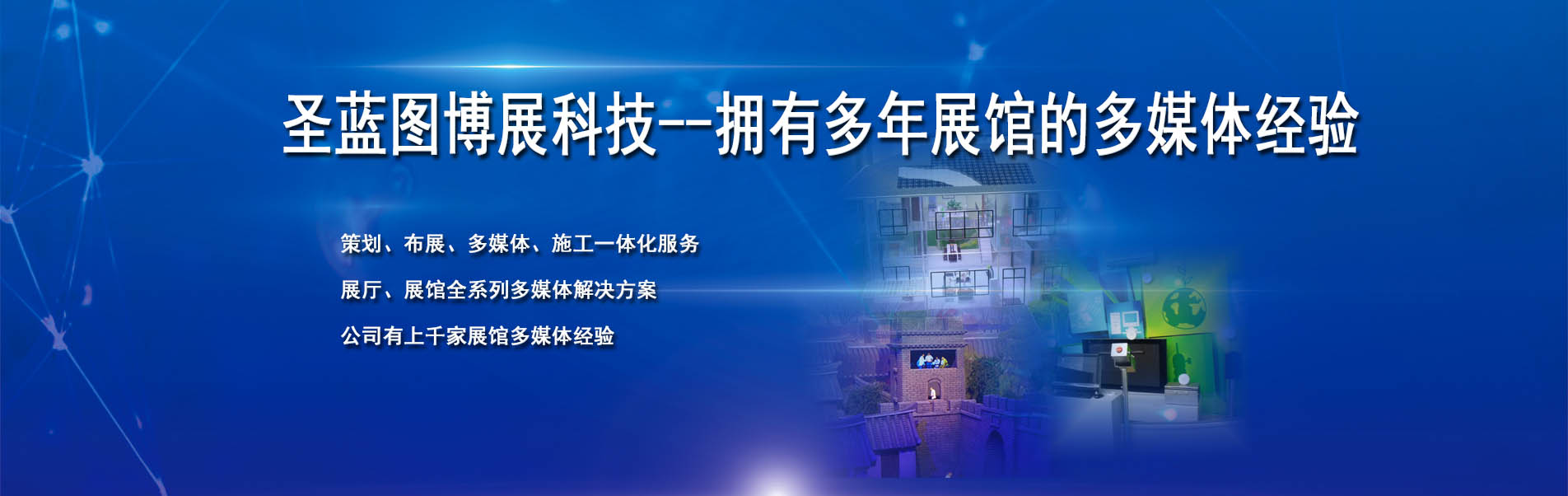 我們的核心業(yè)務 石家莊市圣藍圖博展電子技術有限公司,始創(chuàng)于2002年,致力于數(shù)字藝術體驗營造,將科技與藝術美學相融合,為客戶創(chuàng)意更有價值的科技互動體驗。服務涵蓋項目概念規(guī)劃、效果設計、施工執(zhí)行、交互內容制作及后期維護服務。專業(yè)一體化的服務讓圣藍圖贏得良好的客戶信譽與口碑,更成為多家布展商、工程公司、裝飾公司授權戰(zhàn)略合作伙伴,行業(yè)領域值得信賴的合作伙伴。
